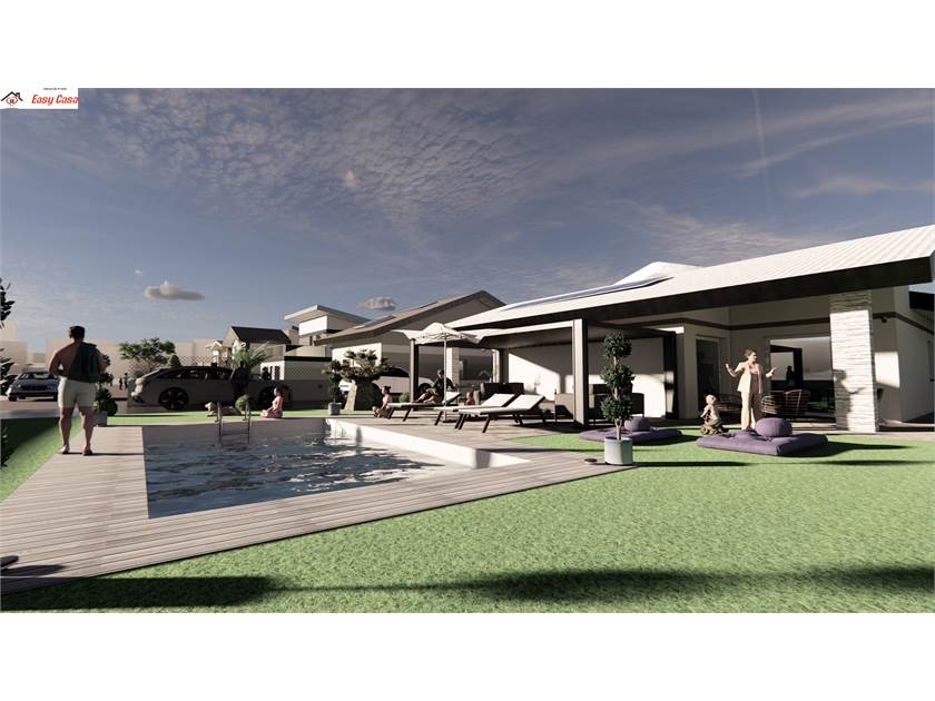 la villa si sviluppa su unico piano, con ingresso in ampio soggiorno di 40 mq con area cottura a vista; due camere singole particolarmente spaziose; doppi servizi e camera matrimoniale con cabina armadio. La particolarità di questa soluzione sono gli spazi esterni: un ampio patio di 20 mq collega la casa alla piscina interrata, a cui si aggiungono altri due patii di circa 10 mq l'uno.
